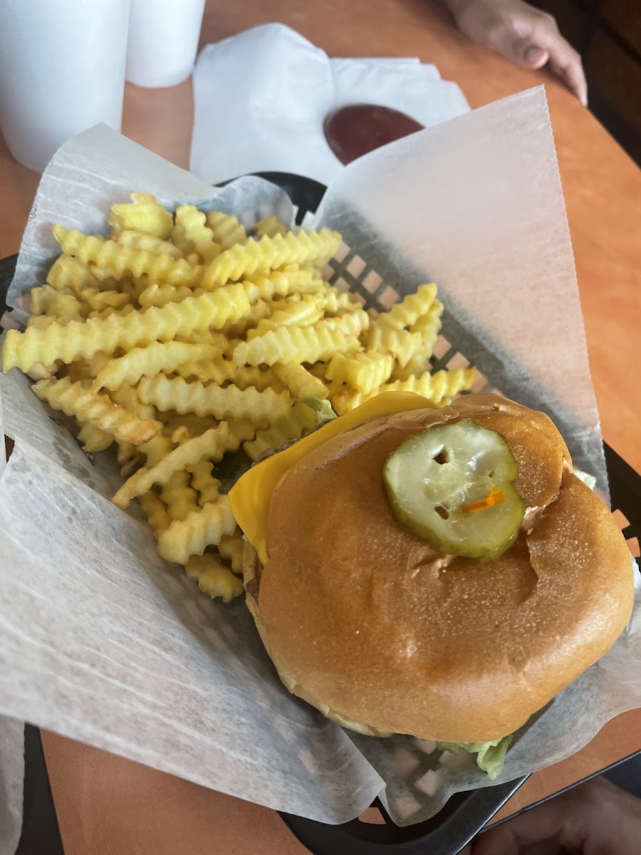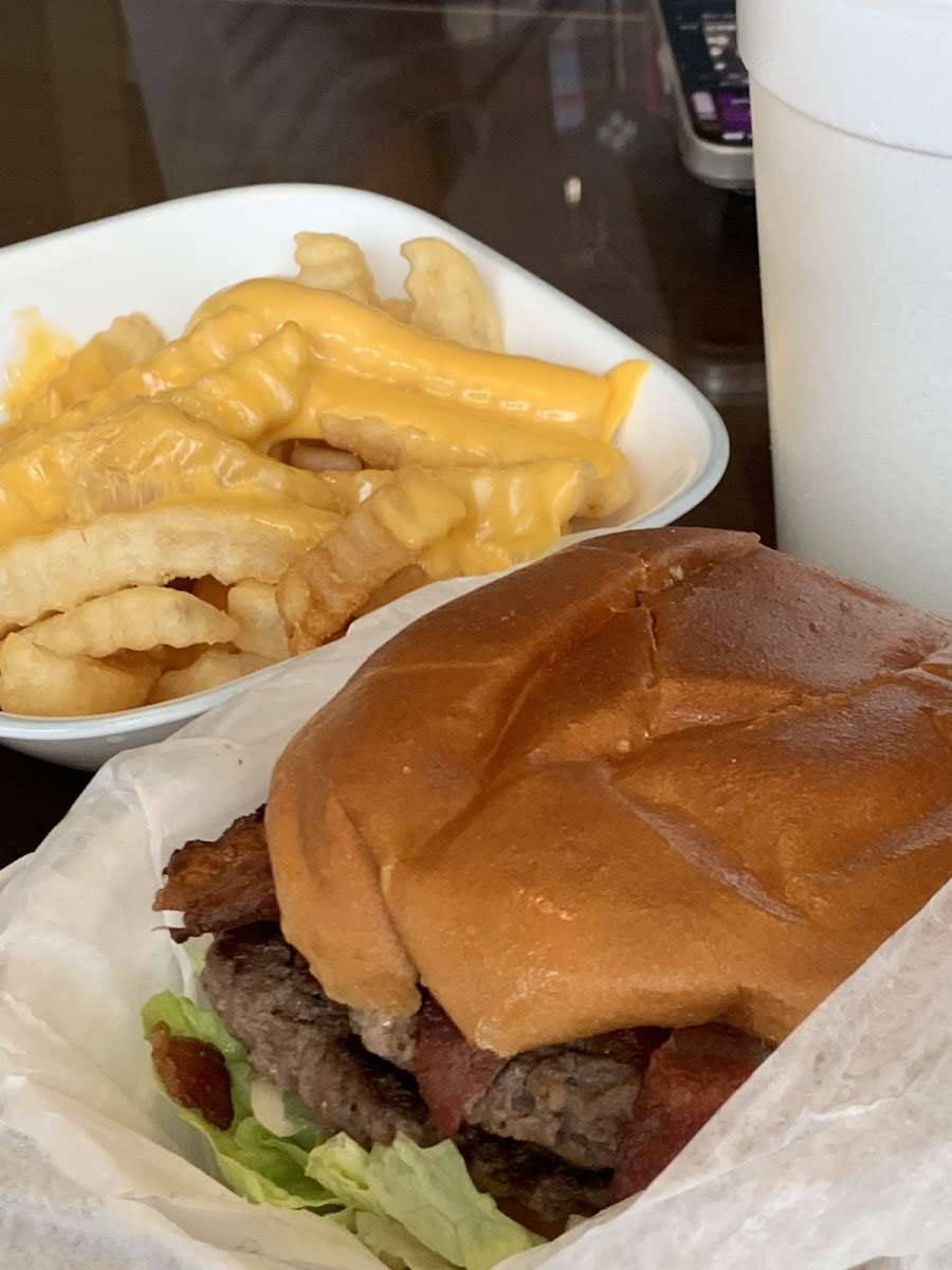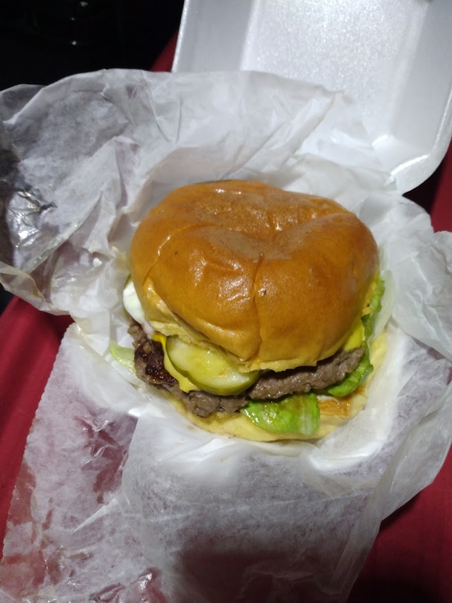 Tried this place for the first time today! Just curiously decided to try it. Walking in I was greeted by such friendly staff. No line but a few patrons. Ordered the Amazing double with bacon. I honestly wasn’t expecting much but my mind quickly changed when I took my first bite of my burger. This burger definitely felt like it was cooked with passion and came out perfect. When I crave a burger, this is literally the one I think about. Nothing fancy just simple. I got Swiss this time but I will define red to try it with good old classic American cheese next time. My only grip was the fries. While I love crinkle cut I should have asked for them to be a bit crispier so that’s on me. I will definitely be coming back again.